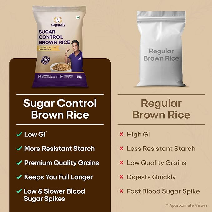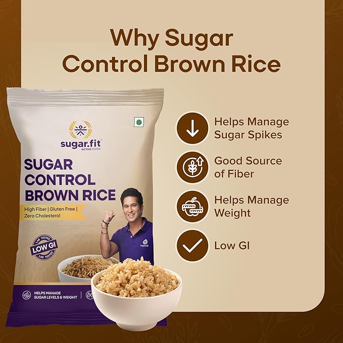Sugar.fit Sugar Control Low GI Brown Rice (1 kg) is crafted to support diabetes-friendly and health-focused diets. With a low glycemic index, it helps maintain stable blood sugar levels while offering high dietary fiber for improved digestion and satiety. This rice is 100% organic, natural, and lab-tested for quality assurance. Gluten-free and nutrient-rich, it is ideal for daily meals, weight management, and overall wellness. Suitable for individuals seeking healthier grain options without compromising taste or texture.